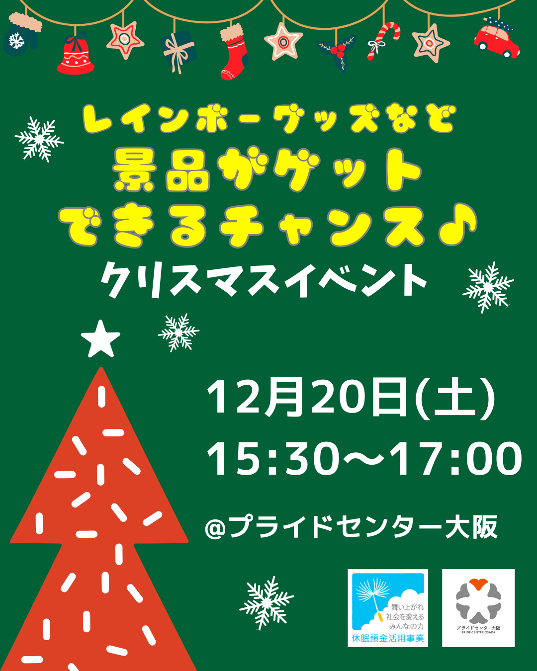 12月20日(土)15:30〜17:00に「クリスマスイベント」をプライドセンター大阪で開催します!