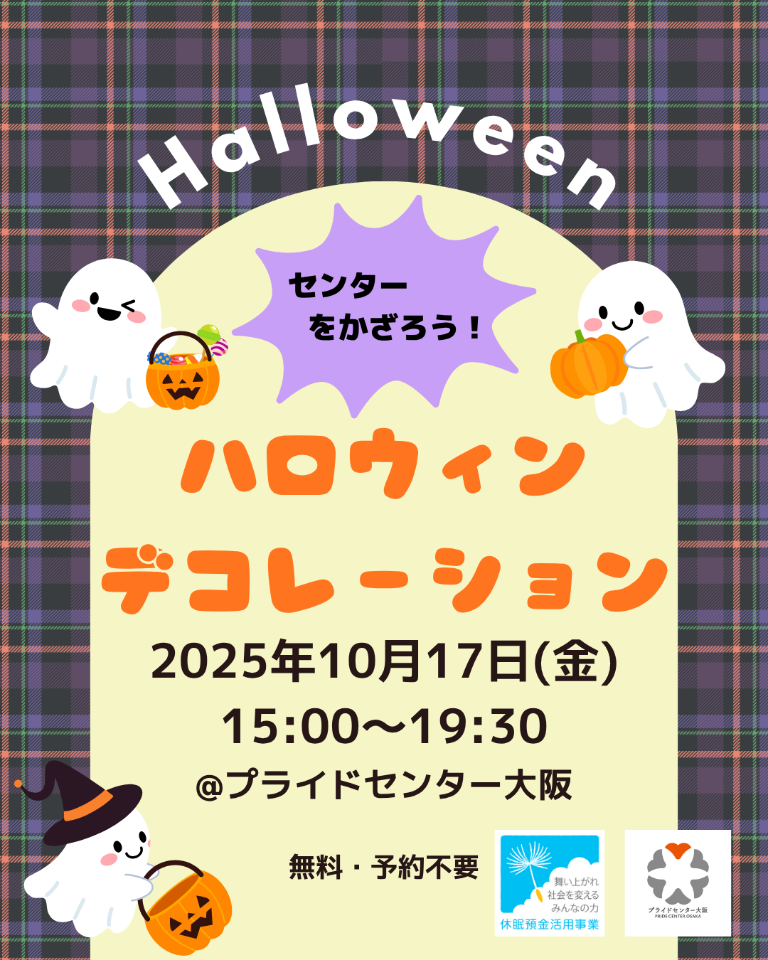 10月17日(金)15:00〜19:30に「ハロウィンデコレーション」をプライドセンター大阪で開催します!