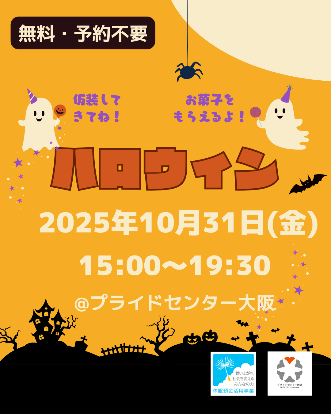 10月31日(金)15:00〜19:30に「ハロウィン」をプライドセンター大阪で開催します!